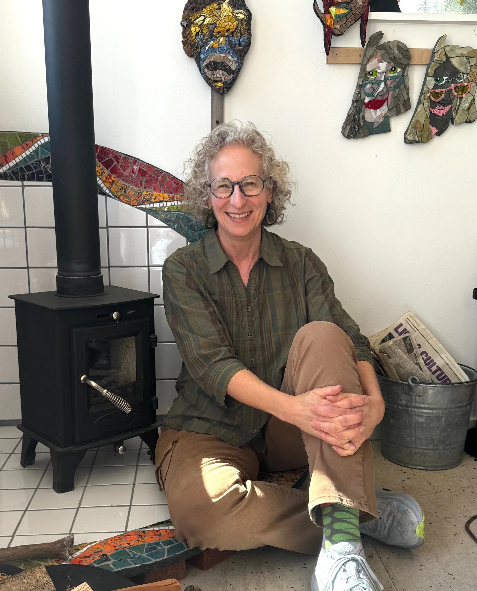 Claire Brill is a professional mosaic artist who works out of her home studio in Media, PA. After creating dozens of large-scale community mosaics Claire now focuses on her individual artistic voice and teaches at Fleisher Art Memorial in Philadelphia. Her years of study at The Chicago Mosaic School have included mentorship by world renowned mosaicists.